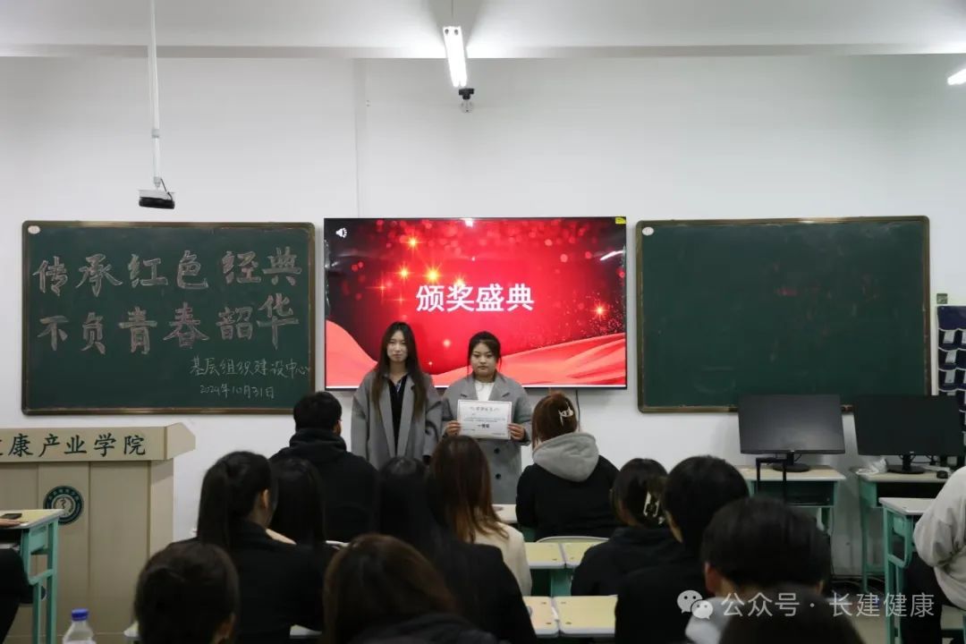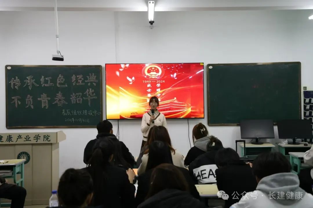 为深入学习党史,传承红色基因,弘扬革命精神,通过朗诵红色经典文学作品,让参与者深刻感受革命先烈的英勇事迹和崇高精神,激发学生爱党爱国热情,推动校园文化建设,10月31日,健康产业学院于D栋216开展“传承红色经典,不负青春韶华”朗诵比赛,24级全体学生参加。