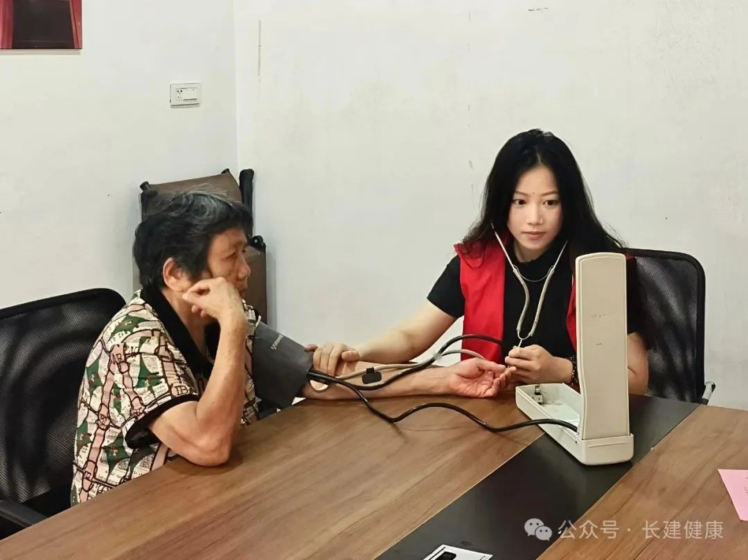 健康产业学院护理2301班叶子颖在闹村乡养老服务中心担任志愿者,本次志愿者活动内容有为老人们测量血压、遵照医嘱协助给药、为老人们建立和完善健康档案、组织开展文化娱乐活动等。